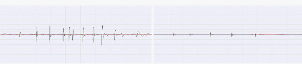 El SPL equivalente (pico) es 80 dB (4011A) y 61 dB (2028). Esto muestra que el diseño portátil proporciona una amortiguación mucho mejor de este clic.