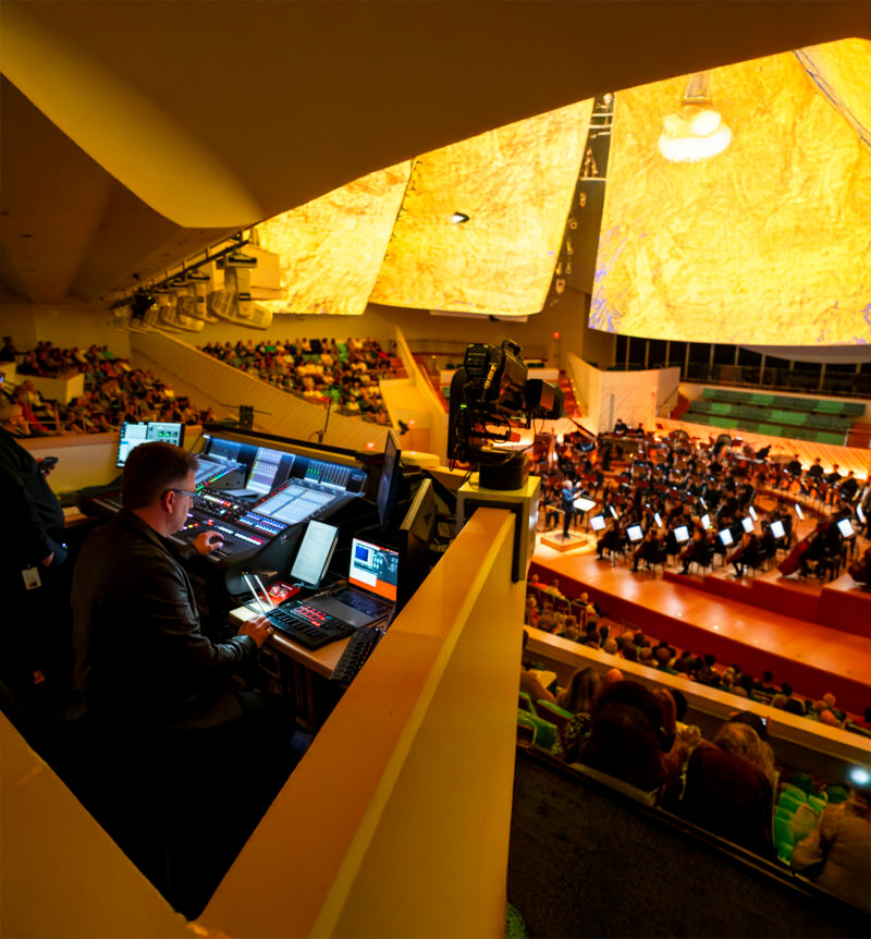 Transmisiones críticas sin margen de error. Con el software «B», ofrece redundancia total de motores, mezcla surround nativa y un flujo de trabajo optimizado para unidades móviles y estudios de televisión.