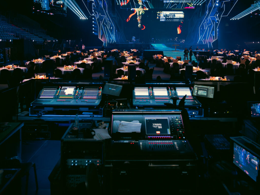La quinta consola, una Quantum 225, se dedicó exclusivamente a las presentaciones y discursos, manejando las intervenciones de los anfitriones y presentadores con claridad y precisión.