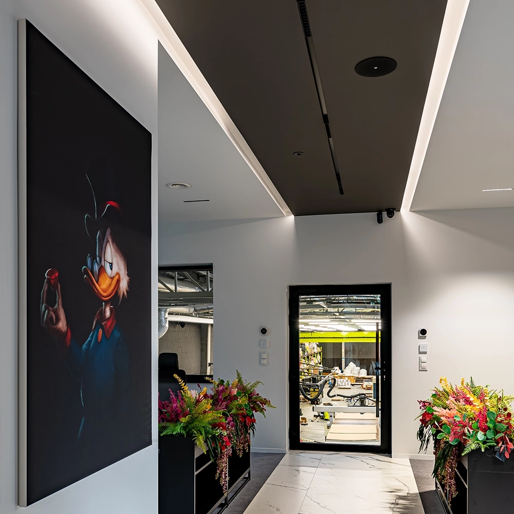La instalación resultante abarca 16 zonas de audio independientes, cada una adaptada a las necesidades acústicas y funcionales de su entorno. Desde música ambiental en el vestíbulo hasta megafonía clara en el almacén, el sistema garantiza que el sonido mejore tanto la productividad como la comodidad. Las fuentes de audio incluyen el reproductor de audio profesional modular SourceCon XMP44, dos módulos de radio por internet IMP40 y dos módulos de streaming NMP40. También se utilizan fuentes locales adicionales, como ordenadores y micrófonos de megafonía.